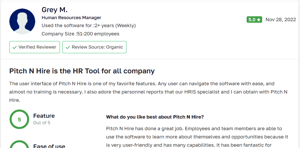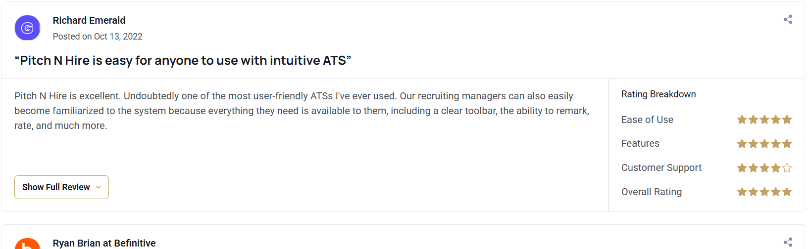 “Really user-friendly — simplest ATS I’ve ever used.” — Grey M., HR Manager SoftwareSuggest