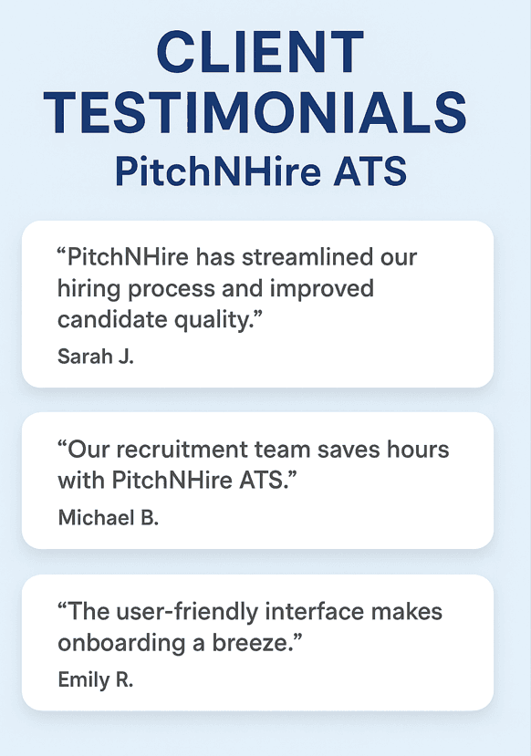 "As a startup, we needed a cost-effective and user-friendly ATS for a small business. PitchNHire ATS has been exactly what we were looking for. The intuitive interface and affordable pricing have made it a valuable tool for our growing company. It truly is the best ATS for startups in Dublin I've used."